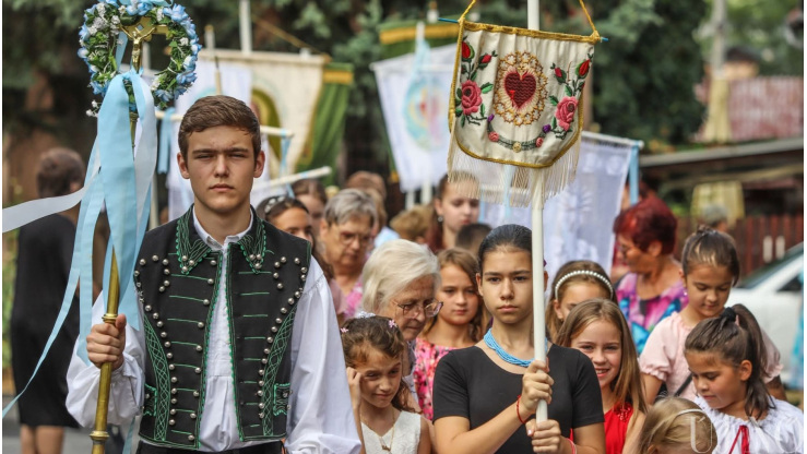 „Boldogasszony, Anyánk, régi nagy Pátrónánk...” Amikor a templomban felcsendül a jól ismert népének, könnybe lábad a szemem. Nézem a gyerekeket, és eszembe jut az anyák napi műsor az óvodában: a gyermeki öröm, a lelkesedés képei vonulnak fel lelki szemeim előtt. Nem igaz, hogy a csúnya is szép, hogy nincs is szépség, nincsen tisztaság... A mi búcsúnk igenis gyönyörű szép. Az ilyen és ehhez hasonló ünnepek abban segítenek, hogy a gyökereinkhez kapcsolódjunk, és gyermekeinknek lelki élményeket adjunk. A virágszórás pedig nem „játék”, hanem hitvallás! Színes, illatos évekmúltán is emlékezetes tanúságtétel. Bízom benne, hogy egy nap majd az én lányaim gyerekei fognak kérdezősködni: „Mikor megyünk már virágszirmot gyűjteni?”