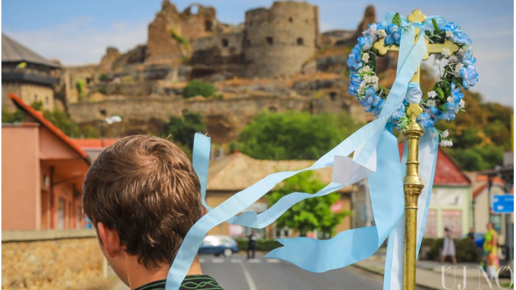 „Anya, mikor megyünk virágszirmot gyűjteni?” Napok óta ezt kérdezgeti a nagyobbik lányom, közben tapogatja a házunk előtt nyiladozó rózsafejeket. Nem nézi a naptárt, valahogy mégis érzi, hogy közeleg a búcsú. A nagy nap számos izgalmat jelent az ő kis életében is, hiszen a búcsú napján a szirmok útját járjuk. Augusztus 15-én van a Mária-kultusz legnagyobb ünnepe, Nagyboldogasszony napja. Ezen a napon van Füleken a templombúcsú, melynek a legmeghatóbb része a virágszirmos ünnepi körmenet. Így aztán egész héten a rózsákat fürkésszük: Vajon idén mennyi szirmot hajtanak az első nagy levirágzás után?
