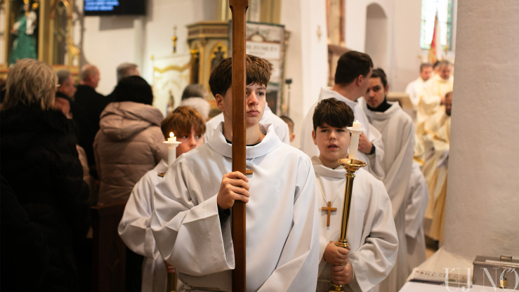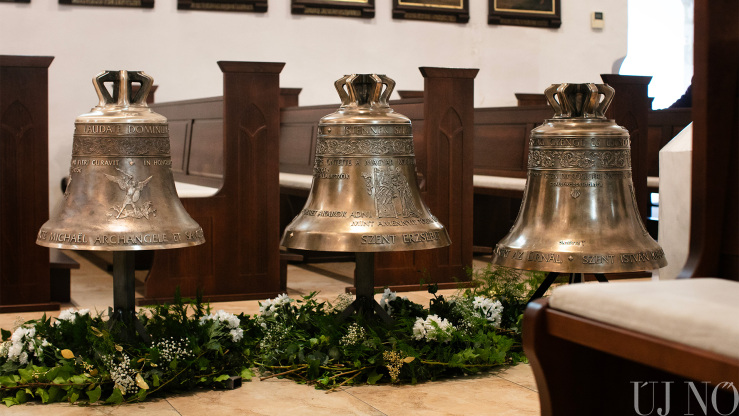A harangokat ünnepi szentmise keretében avatták fel... A község polgármestere hangsúlyozta, hogy az új harangok megszületése a közösség összefogásának erejét bizonyítja, a jövőbe vetett hitét fejezi ki...