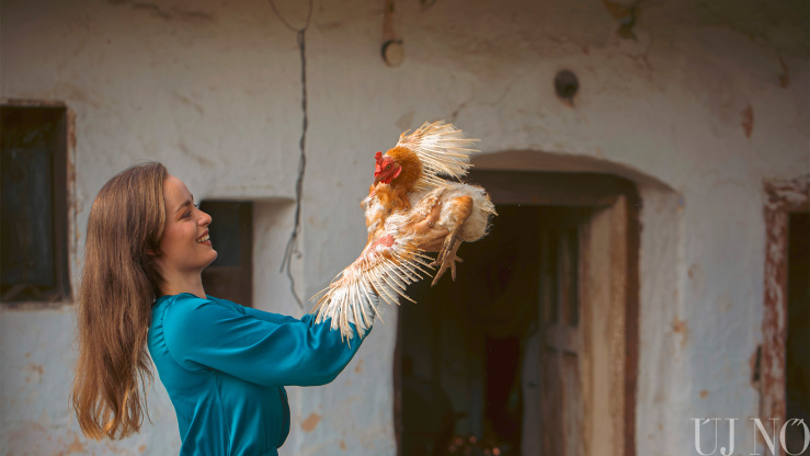 – Szeretem az állatokat. A tyúk pedig egy intelligens állat, ugyanúgy lehet szeretni, mint a kutyát, macskát. Volt egy kedvenc ketreces tyúkom, Szomorka. Úgy ragaszkodott hozzám, ahogy csak egy kutya tud ragaszkodni a gazdájához. Az ő emléke arra ösztönöz, hogy még jobban szeressem a tyúkjaimat. Betegen került hozzám, kigyógyítottam, utána mindenhová követett, kotyogott nekem. Építkezés közben apukám véletlenül elütötte a traktorral. Miatta vállaltam el ezt a nőcis fotózást, mert sokan nem tudják, hogy mennyire jó fejek tudnak lenni a tyúkok. Egyébként ma egy kisebb csoda történt a baromfiudvarban. Az egyik ketreces tyúkom megkotlott, s kiköltötte a második kiscsibéjét. A ketreces tyúkok nem szoktak megkotlani. Három év alatt, amióta tyúkjaim vannak, egyik sem ült meg. Megfordult már vagy száz tyúk nálam, de csak ebből az egyből lett kotlós.