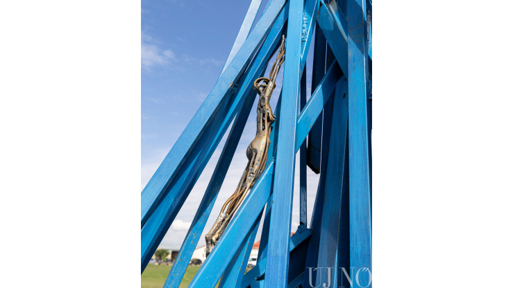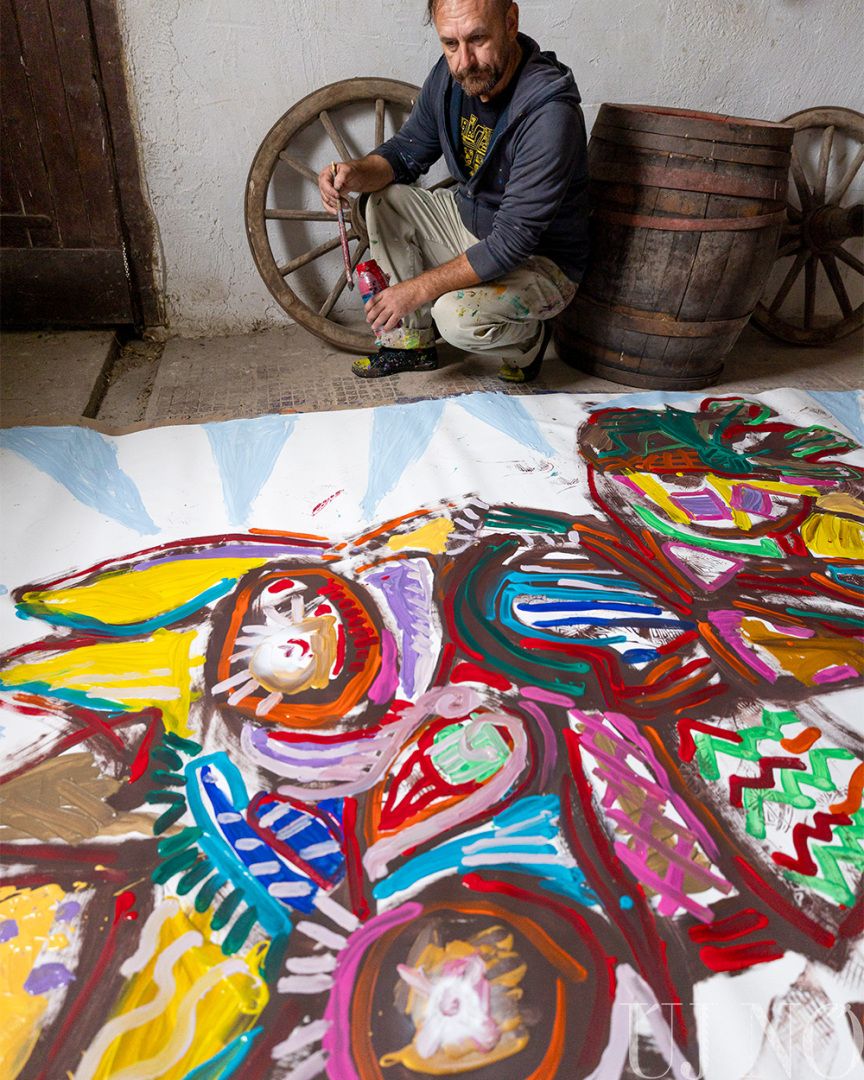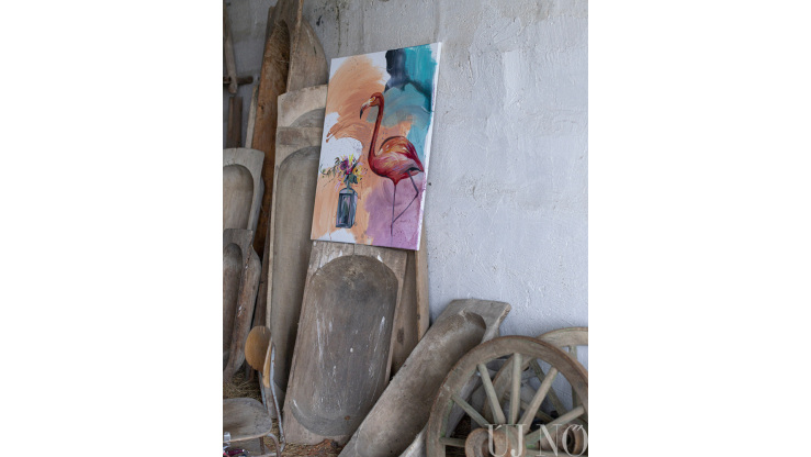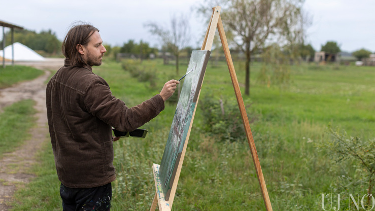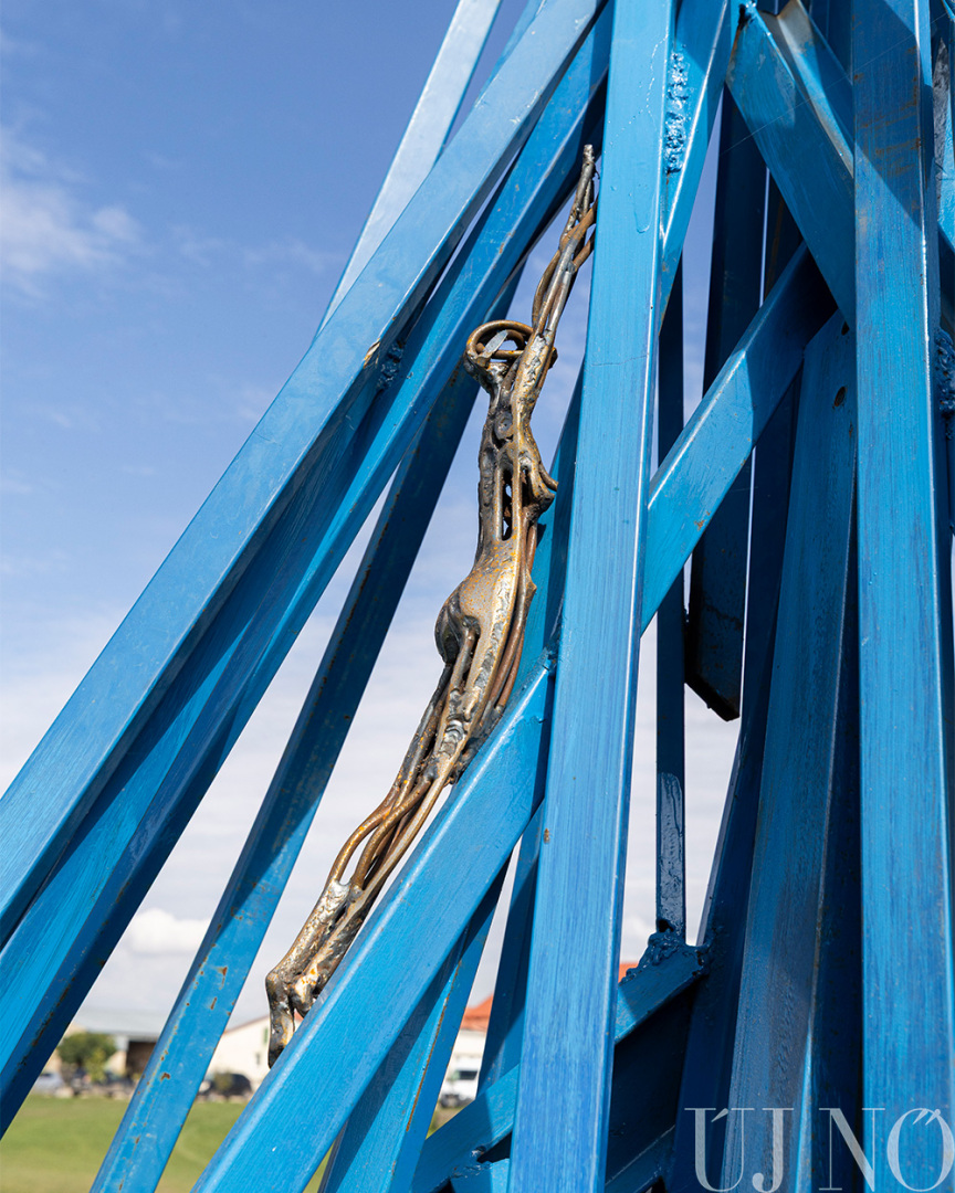 – Egy reggel felébredtem, és az első gondolatom az volt, hogy a tanya tökéletes hely lenne a művésztelep számára – folytatja Enikő, akinek neve mára egybeforrott a művészteleppel. – Mintha csak megálmodtam volna... Rögtön felhívtam Gyurit, és közöltem vele, hogy a kezdeményezés mellé állunk. Azóta a családunk a fő támogató, de a barátaink is segítő kezet nyújtanak a művésztelep finanszírozásában. A részvétel az alkotók számára teljesen ingyenes, hálájuk jeléül alkalmasint itt hagynak egy-egy képet. Az idei év különlegessége, hogy a festőművészek mellett egy ifjú pozsonyi szobrásztehetséget, Martin Mjartant is vendégül láthattuk, aki egy elegáns fémszobrot hagyott a tanya közepén. A szobor diszkréten, mégis karakteresen simul bele a tájba...
