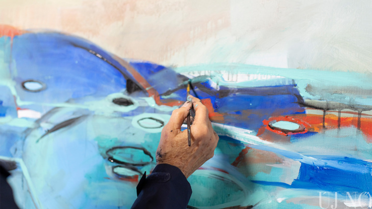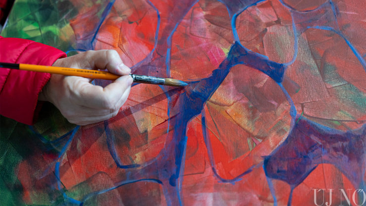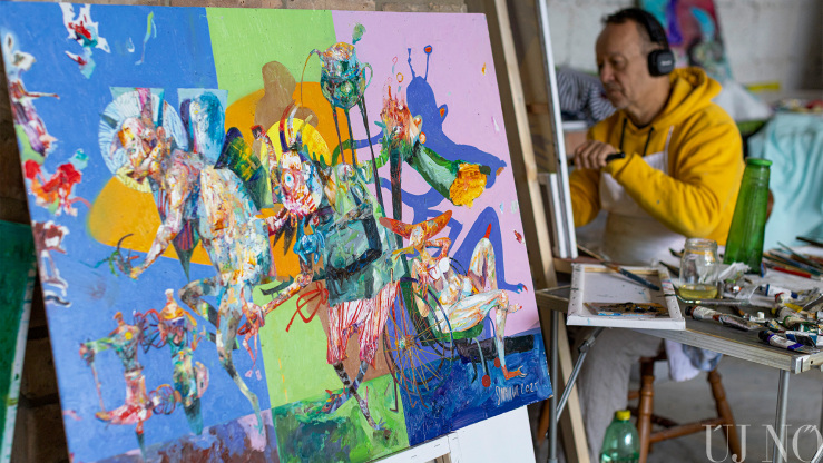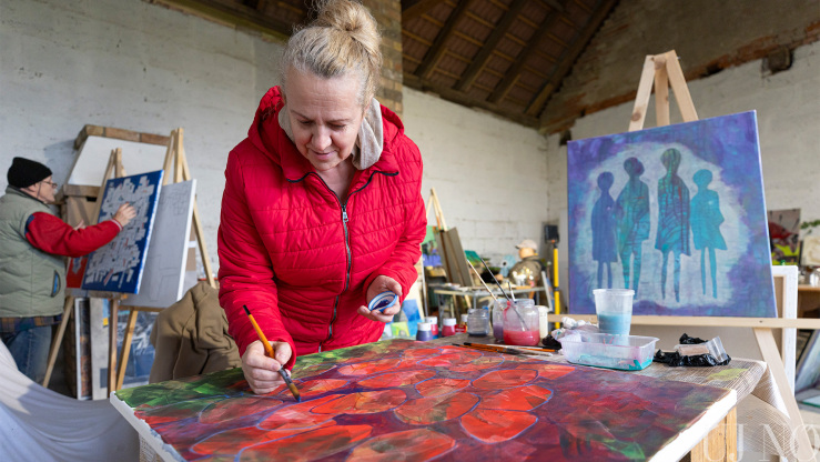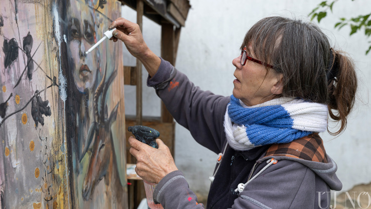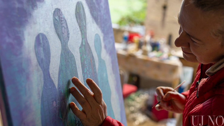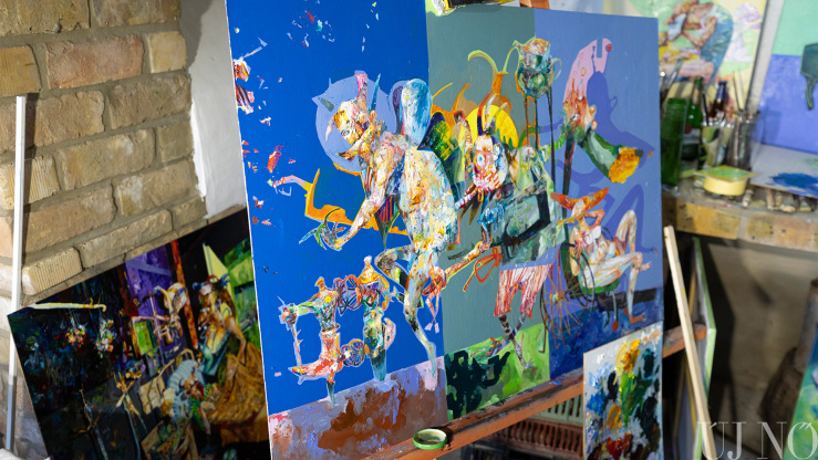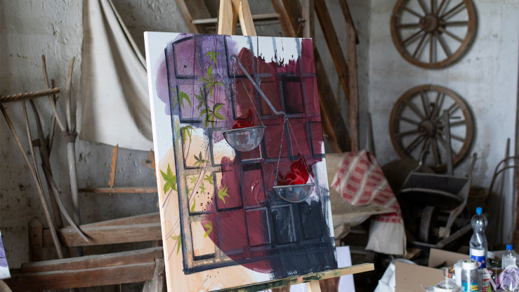 – Itt félretehettem a hétköznapi elfoglaltságokat, és kizárólag az alkotásra koncentrálhattam. Tetszik, hogy nincs tematikai megkötés, nagy művészi szabadságban alkothatunk. Az is sokat jelent, hogy nem kell gondolkodnom például azon, hogy másnap mit fogok enni. Főznek ránk, mégpedig kiválóan. Gondoskodnak rólunk. Semmi másra nem kell fókuszálni, csak az alkotásra. Adva volt a tér és a lehetőség arra, hogy nagyobb képeket fessek. Mivel több festékréteget egymásra vivő technikával dolgozom, míg az egyik réteg szárad, addig egy másik képen is dolgozhatok. Így a szimpózium végére 19 alkotással készültem el.
